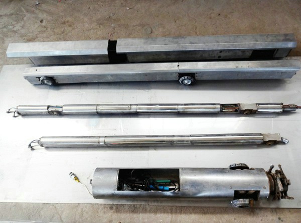 89-159-219補口機主要結(jié)構(gòu)由行走、定位、除銹、供料、旋噴和控制等部分組成。行走系統(tǒng)可控制設(shè)備在管道內(nèi)正反兩個方向爬行;定位系統(tǒng)采用COMS定位裝置,操作人員通過控制箱可直觀、準(zhǔn)確、方便地確定要補口補傷的位置;除銹系統(tǒng)可有效對環(huán)向焊縫及相鄰區(qū)域進行除銹以及搭接邊的拉毛等處理;液體涂料的供料系統(tǒng)針對A、B組份有各自獨立的料倉和料泵,并配置有恒溫供料系統(tǒng);雙組份涂料經(jīng)專用泵供至旋噴槍并在充分混合和霧化后涂敷至管道內(nèi)表面;粉末涂料補口時,需要管道外的中頻加熱設(shè)備配套作業(yè)。補口機器人工作時所有的操作指令都通過控制箱上的按鍵來實現(xiàn)遠程搖控作業(yè)。